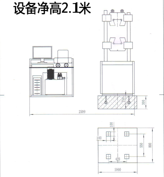 5、 拉伸钳口之间最大距离(包括活塞行程): 600mm(可定做加高款)