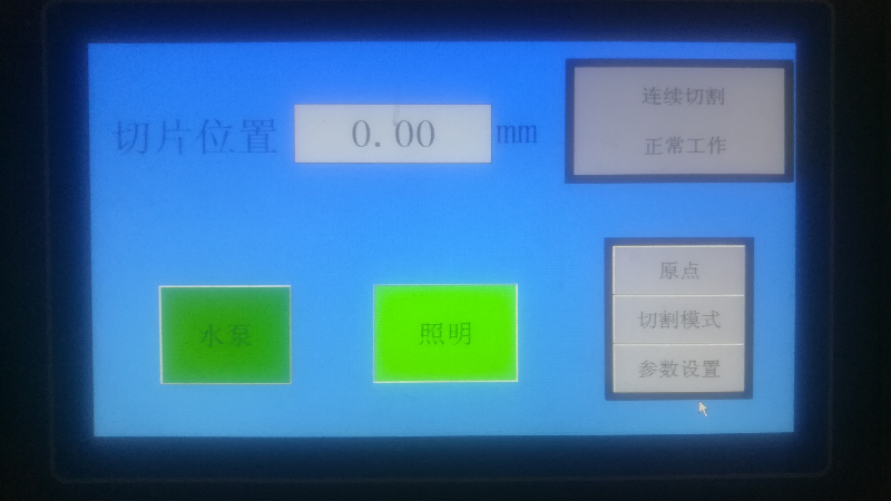 (5) 水泵键。自动工作过程中,无需按动,水冷却自动运行。仅在清理切割室时,可操作启动。