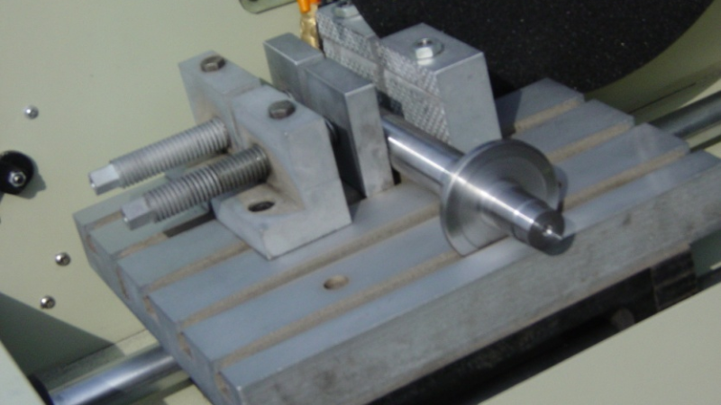 6、 切割完毕后,旋转左侧手轮,将切割砂轮片退回到起始位置。