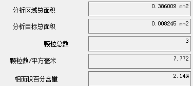 长轴、短轴、直径,以及颗粒总数、颗粒总面积、颗粒面积百分比、平均直径、颗粒数/平方毫米。