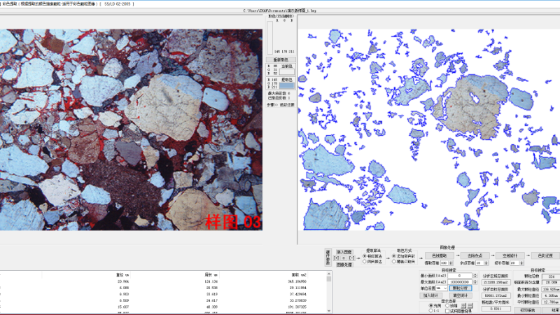 用鼠标在图上选择颗粒颜色,再设置提取参数,提取出满足要求的颗粒,算