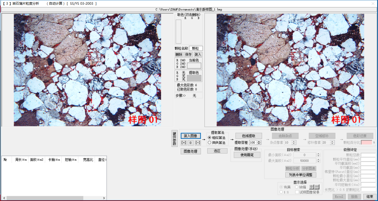 【 3 】岩石薄片粒度分析(自动计算)……SS/YS 03-2003