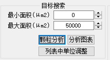 l 用鼠标在图上选取需要分析颗粒的颜色,可以选择6种颜色,然后设置搜索参数,搜索出想要的颗粒,并算出颗粒百分比,同时算出颗粒总数、平均直径、平均截面积、平均截距、弗里特直径等值。