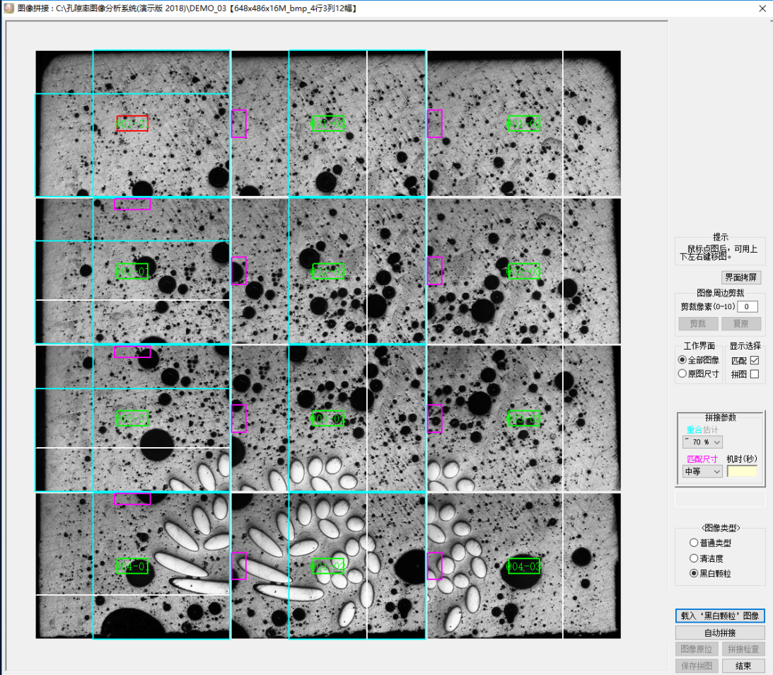 1、图像拼接功能:设置好拼接参数和图像类型,点击自动拼接,自动完成图像拼接