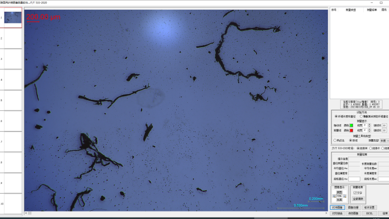 Ø 界面右下方的“边界调整”是专门用于矩形测量的 ,用于设置判断纤维边界的灰度值,以便更加准确的找到纤维边界,更准确计算纤维直径。