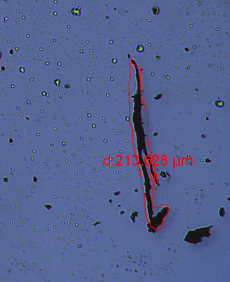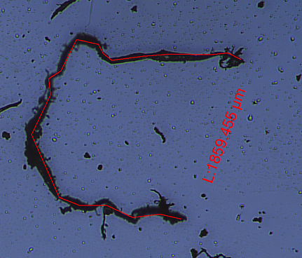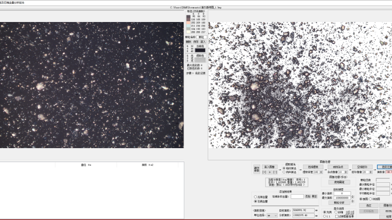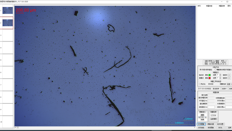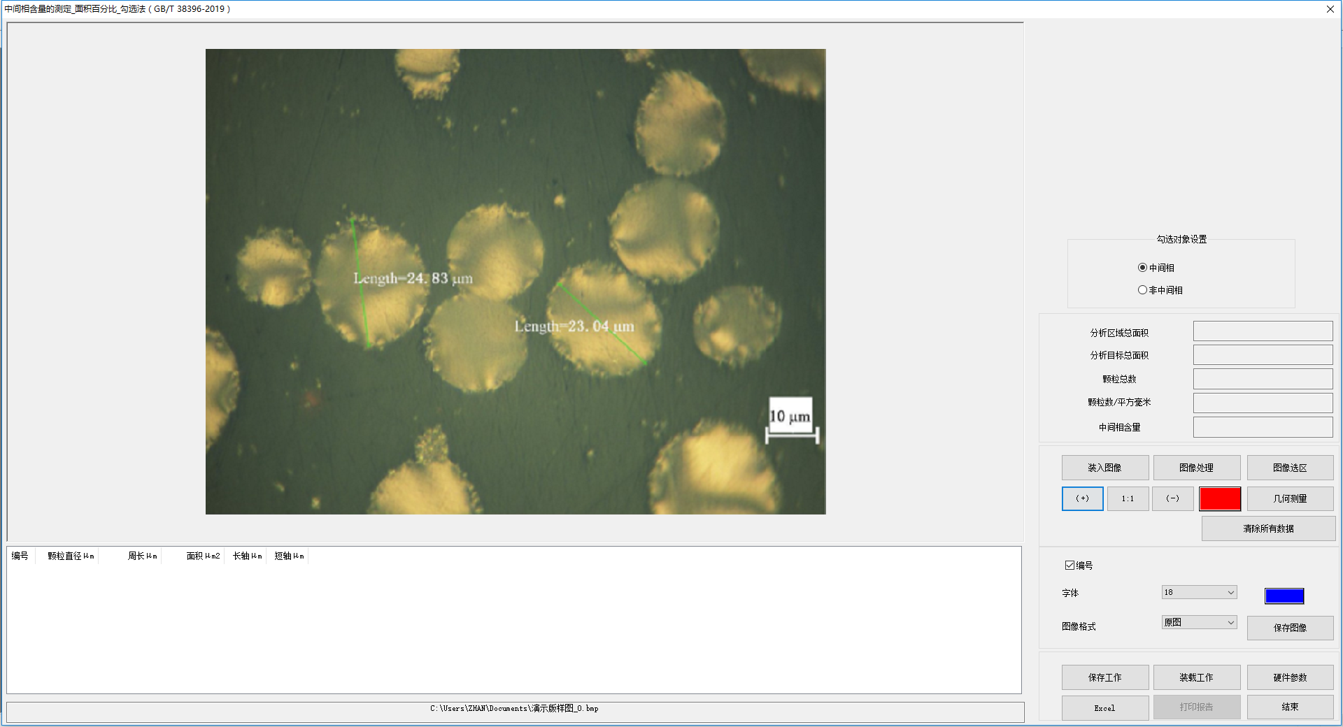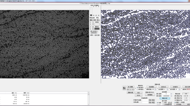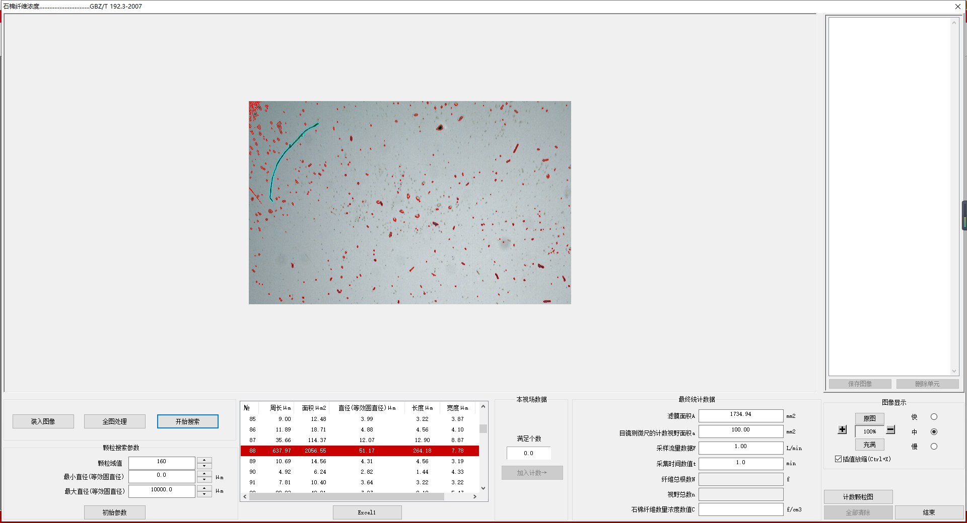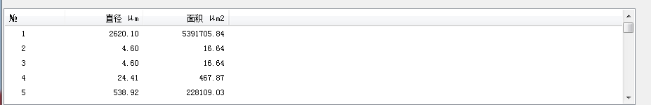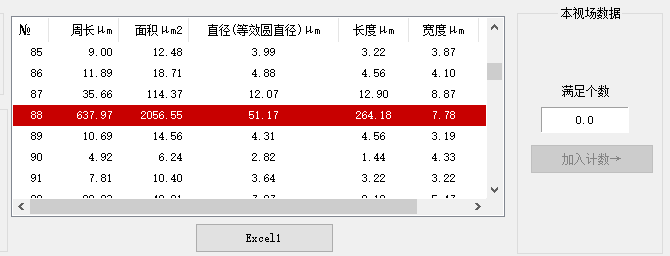 软件根据搜索参数,搜索出满足要求的颗粒,算出每个颗粒的周长、面积、