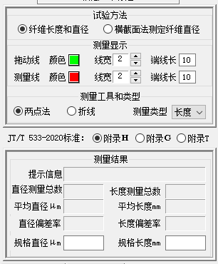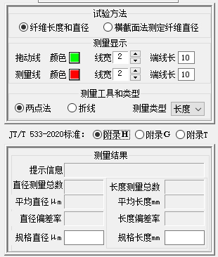 Ø 首先选择“纤维长度和直径实验方法”进行测量—》直接按住鼠标拖线段
