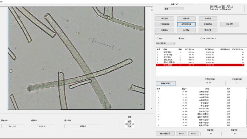 Ø 然后选择“横截面法测定纤维直径实验方法”进行测量