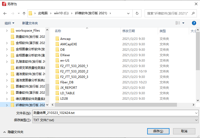 Ø 软件可对测量数据结果保存,点击按钮 “保存测量结果”。