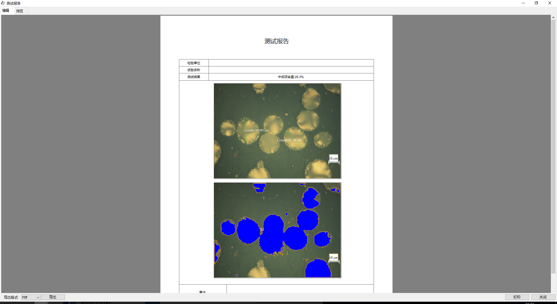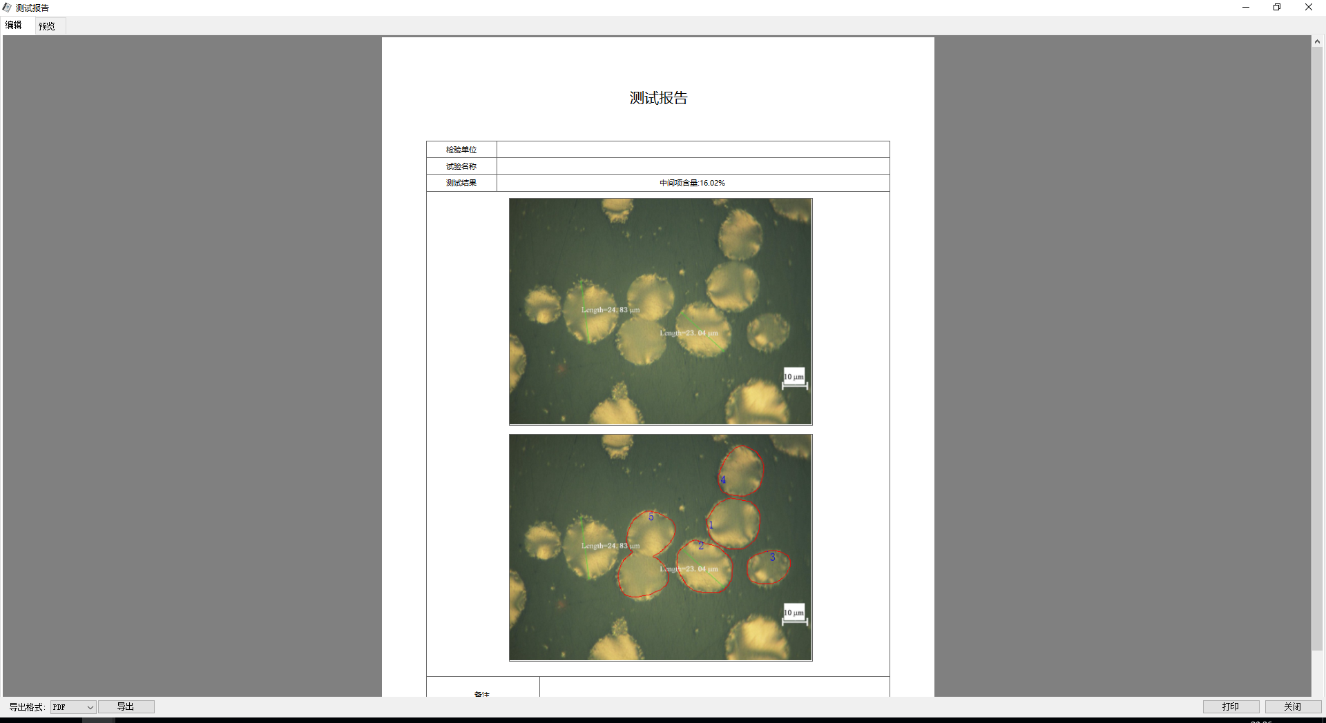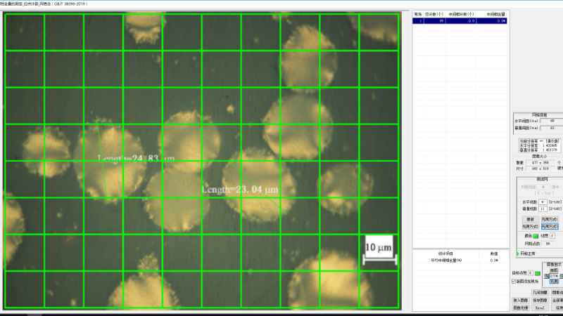 长径、短径,长宽比,统计出每个长径和短径区间的颗粒个数、个数百分比。可以手工添加或删除某颗粒。