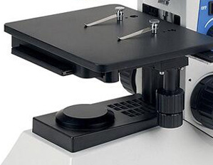 复合式双层机械移动平台,低手位同轴调节,并在机械平台上附设180mm*145mm的平板平台,便于放置较大尺寸的样品。