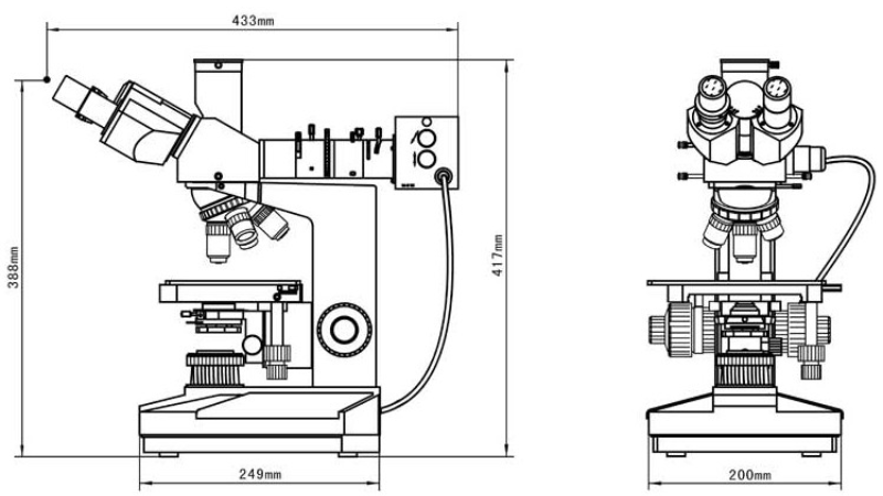 12V 20W,卤素灯, 亮度可调;落射照明器带视场光阑、孔径光阑、起偏振片。 |